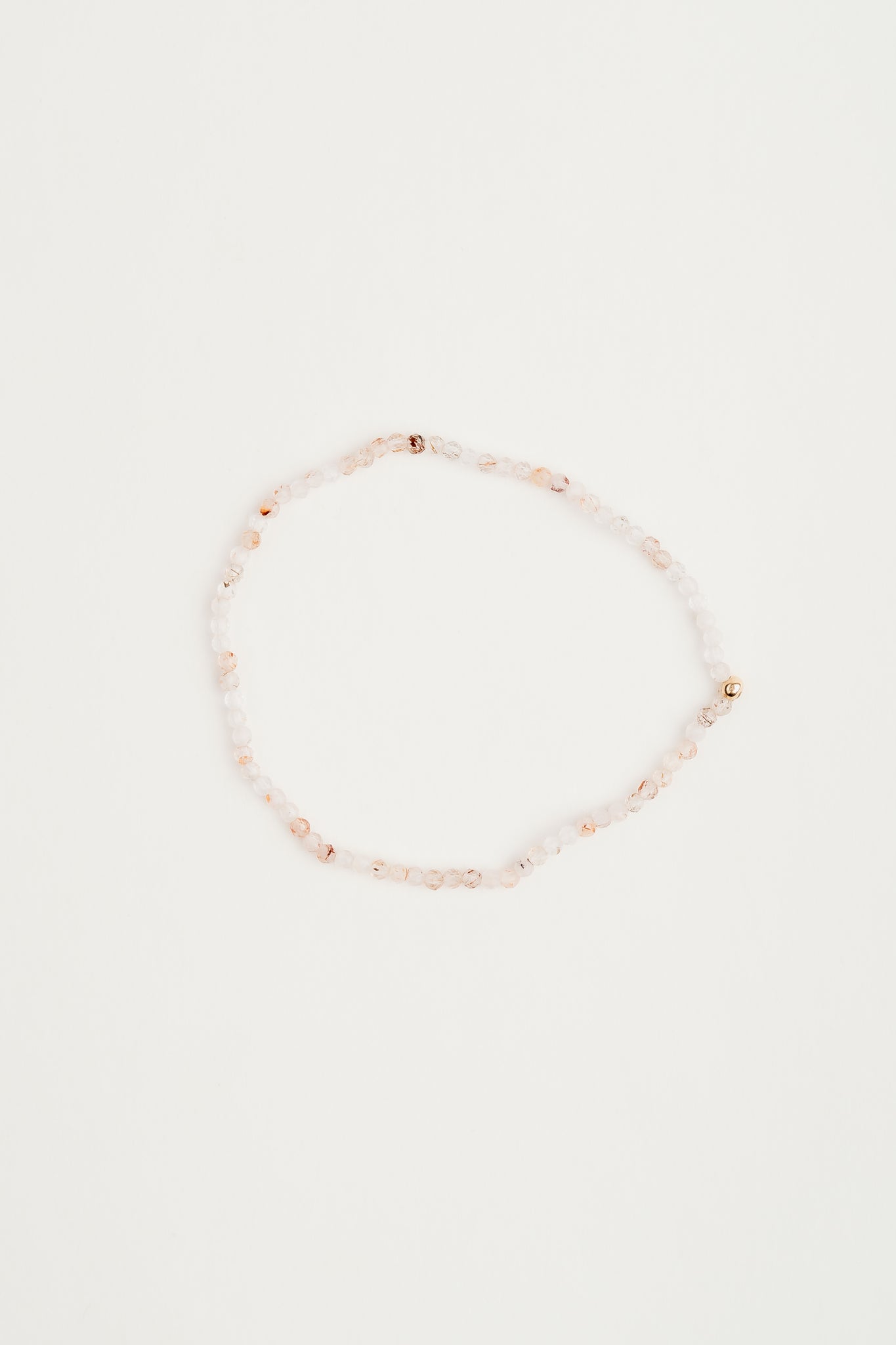 The Solene Bracelet in Copper Quartz glows with gentle warmth and understated radiance. Each natural stone is flecked with golden inclusions that shimmer softly in the light, reflecting energy, strength, and quiet confidence.